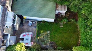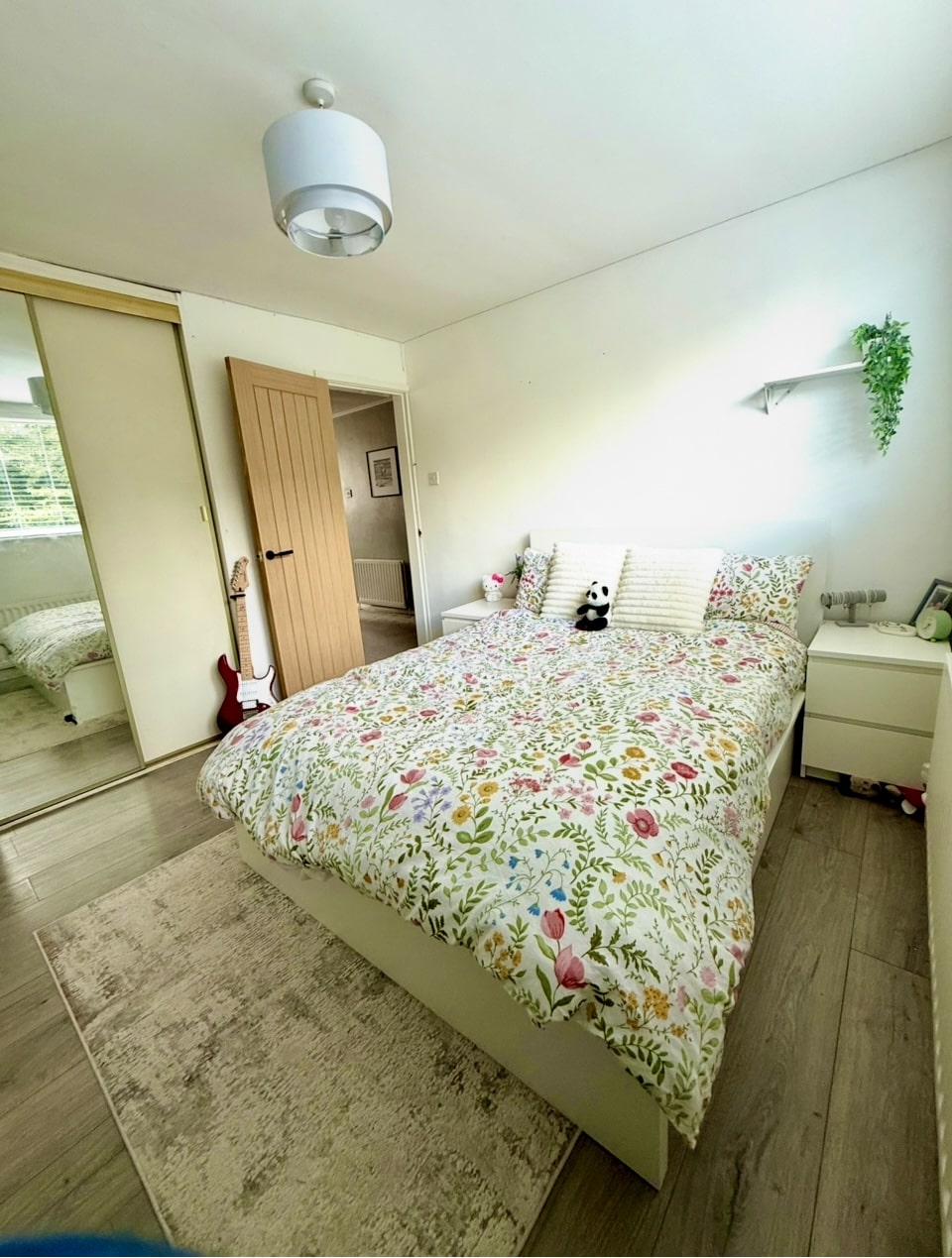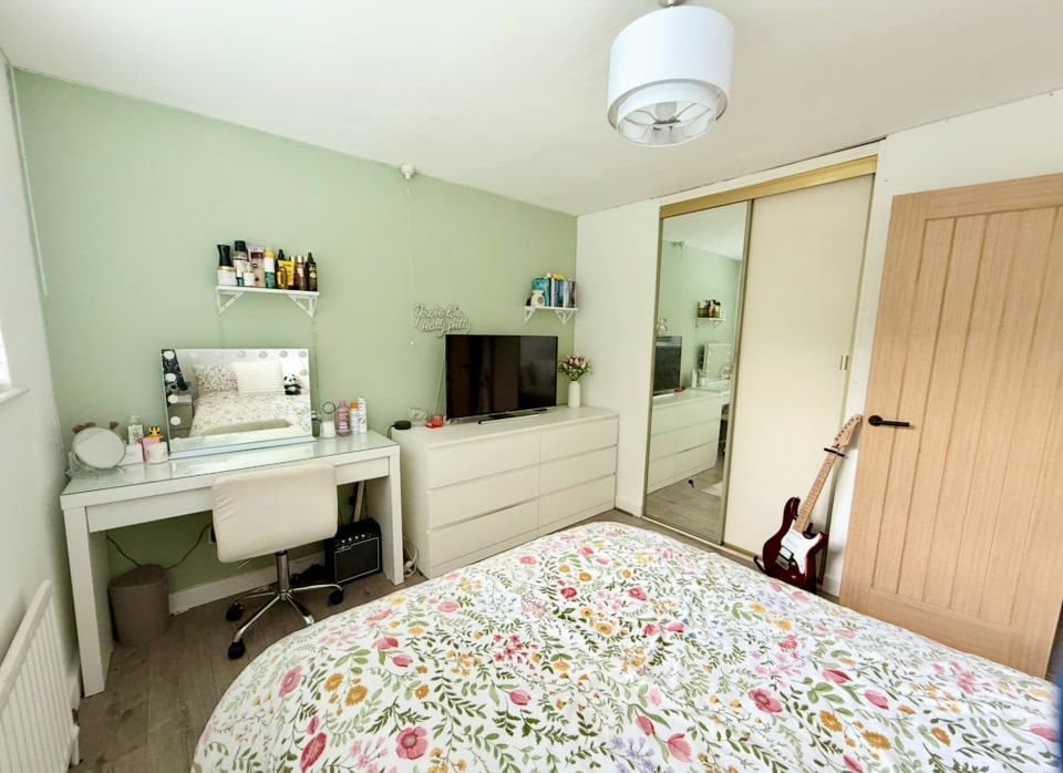 The cosy living area features large porch doors and overlooks an aesthetically pleasing view of the back garden and a treeline giving it the ultimate privacy. The new owners will have the opportunity of adding a Juliet balcony to this area to really wind down after a long day at work, listening to birdsong and watching the sun set with that glass of wine or cup of tea. The generous, patio/lawned rear garden has a "secret garden" feel to it, tucked away and private, being a corner plot - a gate in the corner leads straight onto a woodland path, perfect for walking the dog or a daily stroll.